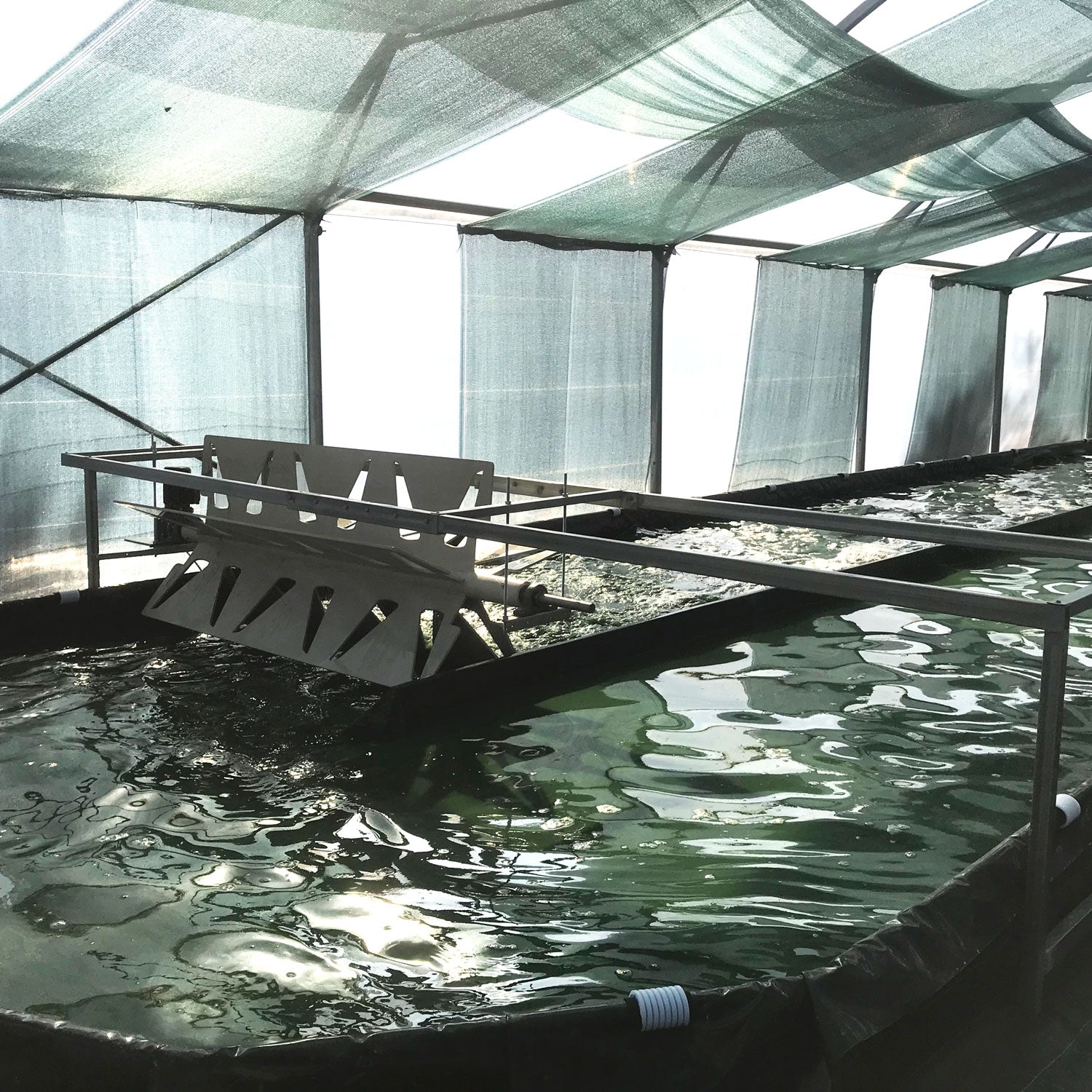 Nous filtrons une partie du bassin pour récolter la spiruline.